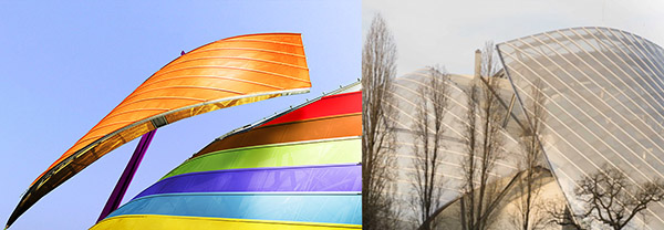 The Luis Vuitton Foundation building in the park Bois du Boulogne in western Paris by architect, Frank Gerhy, is in itself a deconstruction of sails and angles of sailboats.