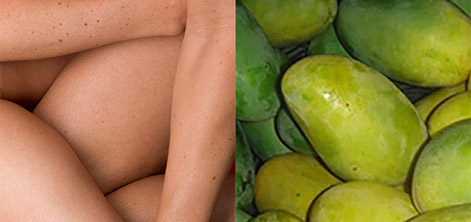 Mangoes were the chosen fruit because the human skin and mangoes have a striking resemblance when photographed in two dimensions.