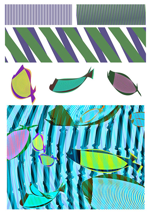 Finally, to complete the artistic illusion, the fish are placed inside the “oceanic environment” at various 3D levels.