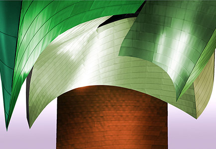 The Walt Disney Concert Hall in Los Angeles designed by architect Frank Gehry posed an interesting opportunity for this style of art.