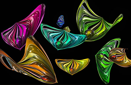 Bottleflies uses a similar approach using an everyday object as a subject: wine bottles of different styles and tonalities. By colorizing, multiplying and manipulating their shapes a totally different perception is achieved, giving the viewer the feeling of looking at butterflies.