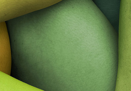 In Mangos a mirror was used to multiply a photograph of arms and legs, which were then tightly cropped and colorized. The skin imperfections have a striking resemblance to that of a mango’s peel.